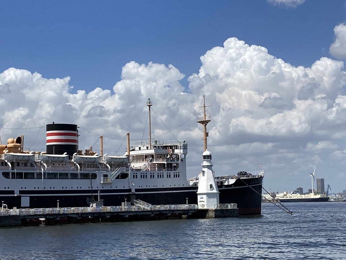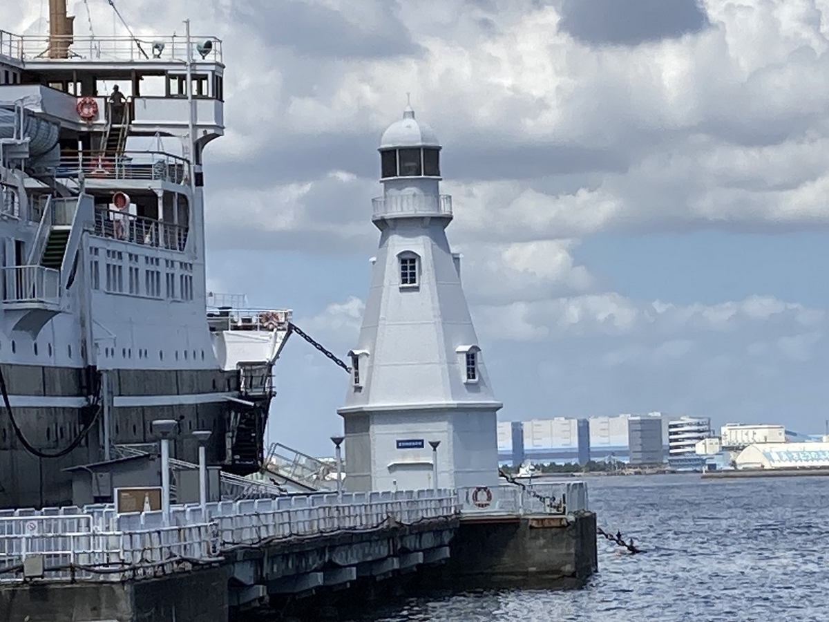 その氷川丸が係留されている桟橋の先端にある白い灯台。