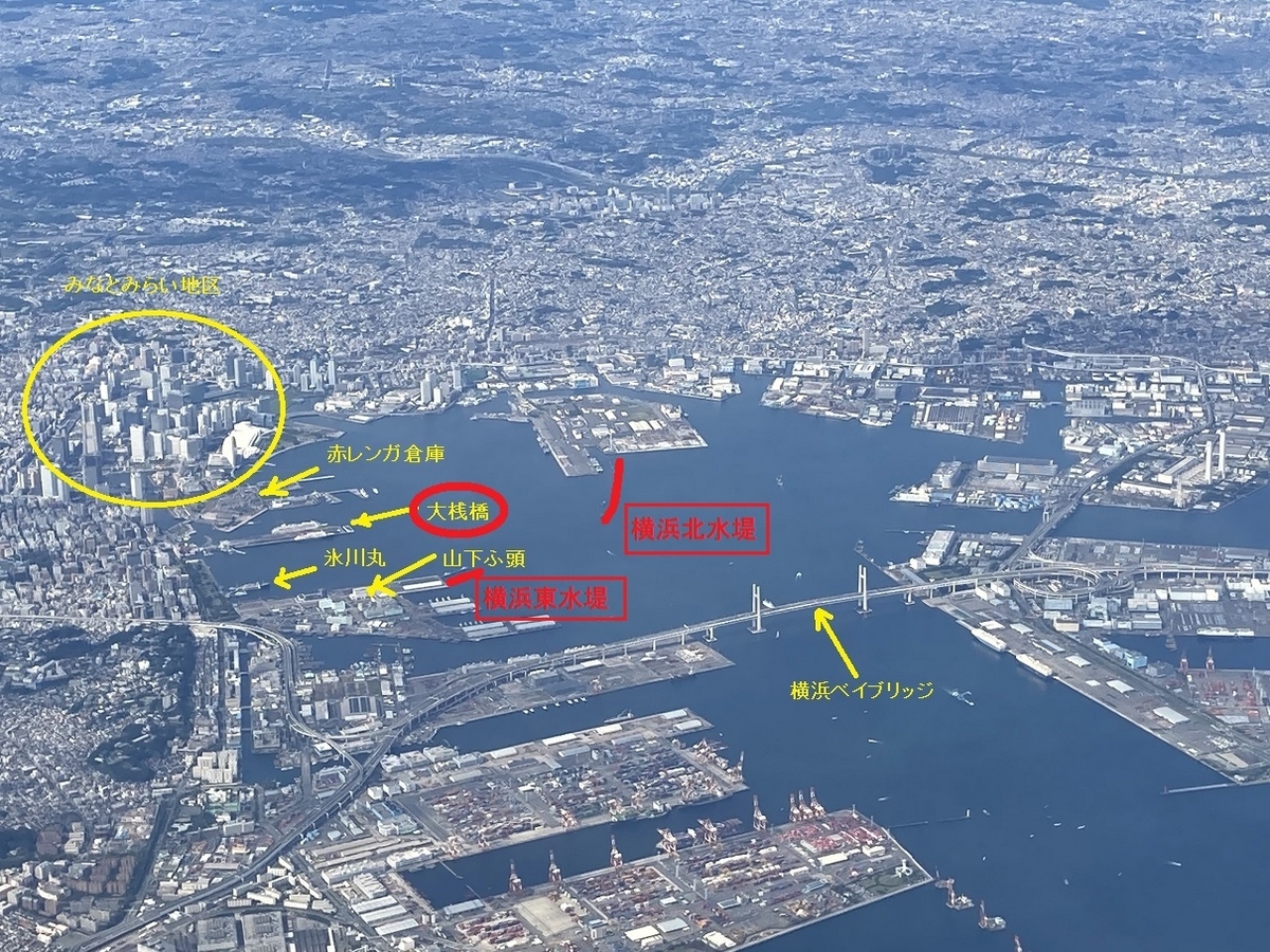 近くにある横浜マリンタワー展望フロアからみるとこのようになっています。