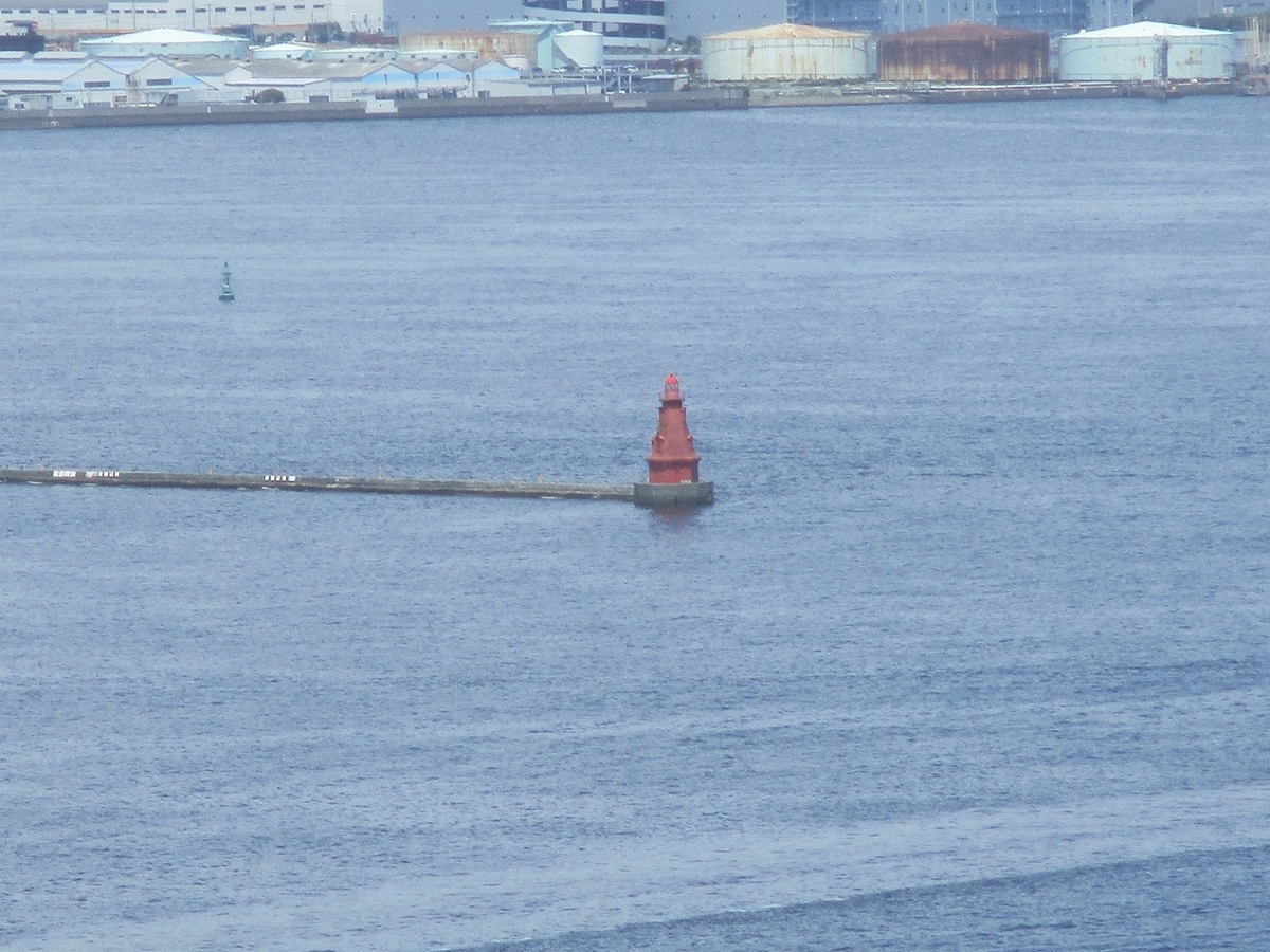 そして、横浜港を望むと、「横浜北水堤灯台」(赤灯台)が見えます。